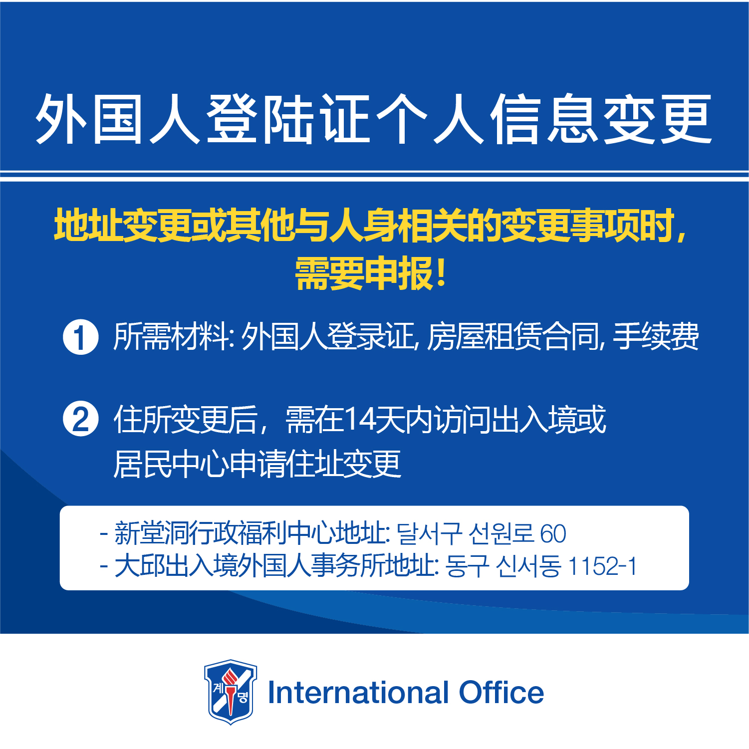 체류안내 : 보험, 체류연장,외국인 등록증 개인정보 변경 (한국어.중국어.베트남어)